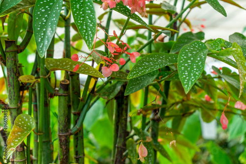 plant, leaf, detail, begonia, closeup, twig, stipe, green, sunny, nature, botany, macro, dense, stalk, foliage, freshness, flowering, flower, blossom, dotted, abloom, red