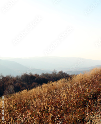 landscape, heaven, nature, grass, field, meadow, fog, autumn, mountain, tree, cloud, forest, blue, morning, view, summer, sundown, mist, sunrise, sun, hill, fall