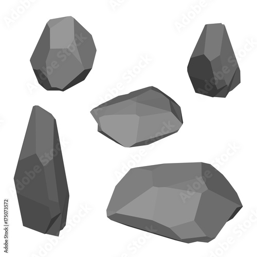 stone, geology, heavy, mineral, natural, old, rock, rough, solid, nature, hard, big, polygonal, geometric, modern, cover, set, collection, group, variation, various, style, polygon, illustration, vector, view, isometric, design, image, isolated, background, object, nobody, three-dimensional, dimensional, white, colours