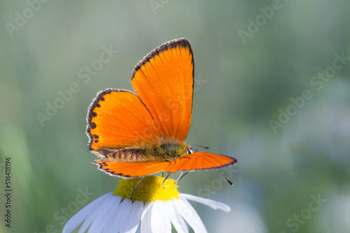 Pomarańczowy czerwończyk na rumianku