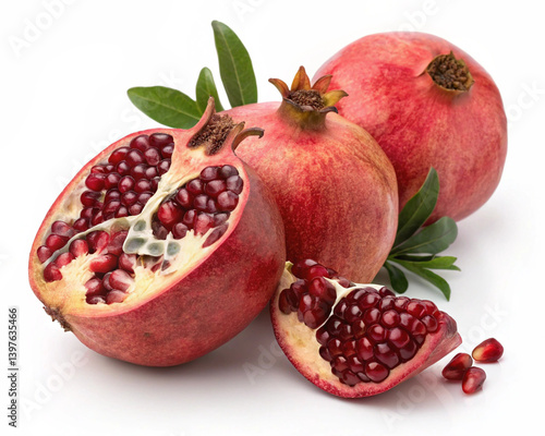 pomegranate, fruit, food, isolated, red, ripe, healthy, white, fresh, sweet, tropical, juicy, vegetarian, diet, freshness, dessert, nature, juice, organic, tasty, half, natural, eating, seed, closeup