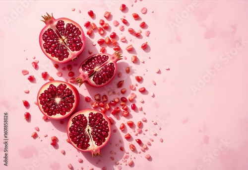 pomegranate seeds on pink background. Pomegranate isolated by pink background