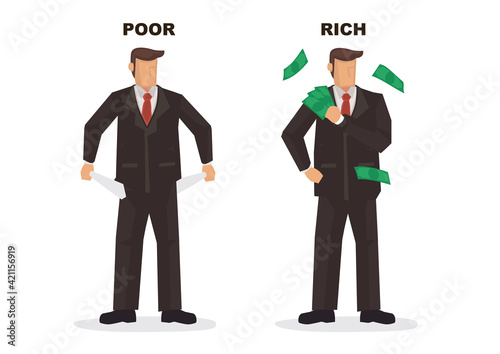 rich, poor, man, people, vector, poverty, happy, arrogant, person, businessman, flat, isolated, illustration, business, wealthy, cartoon, character, note, funny, guy, money, office, sad, white, adult, boss, cash, concept, empty, finance, financial, male, manager, modern, sale, success, suit, wealth, goal, achievement, income