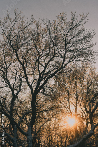 tree, sky, nature, winter, forest, blue, tree, tree branch, branch, wood, autumn, season, landscape, cold, snow, cloud, spring, bare, natural, white, poplar, sunrise, morning, sunlight, farm, rural, silhouette, sun