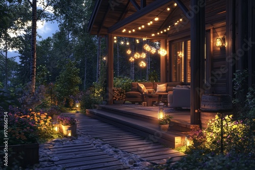 Porch in the garden with comfy sofa bed, modern luxury porch in the garden
