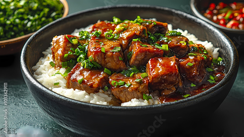Pork leg rice,Steamed rice with braised pork leg, ready to eat