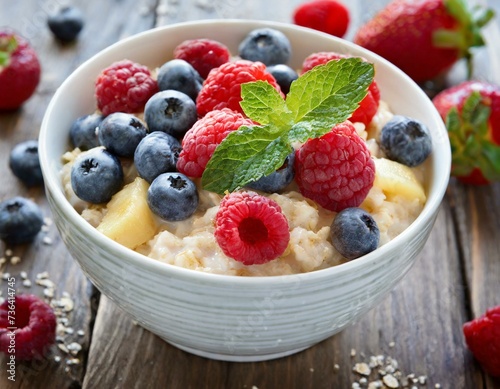 Porridge mit frischen Früchten in Schüssel