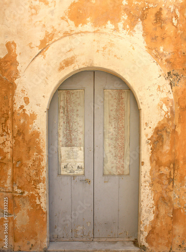 door, glasses, wood, grey, curtain, wall, wall, orange, in plaster, white, decadent, old, old, signboard, otranto, italy, apulia, architecture, house, house, entry, entry, protection, security, passage, casement, double, ante, window