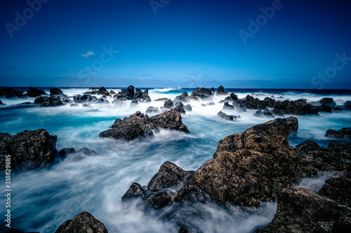 Porto Moniz - Long exposure of rocks and waves at vulcanic coast - beautiful landscape scenery of Madeira Island, Portugal