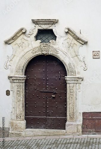 door, door, entry, portal, arched, column, jamb, depiction, capital, carved, stone, icon, icon, wood, wooden, entry, frontend, old, mediaeval, mediaeval, exterior, art, artwork, monolithic, wall, building, di, house number, 40, closed, padlock, enclosed field, bell, beep, intercom, latch, street, hillside, grating, dormer window, pave, stud, quirky, key, house, decor, decorative