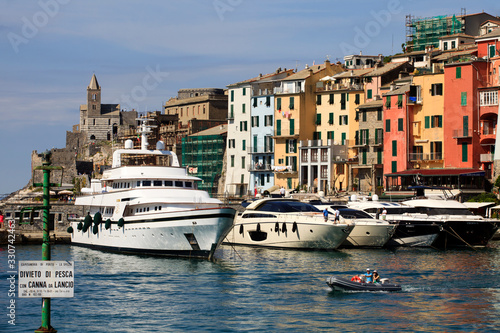 Portovenere ( SP ), Italy - April 15, 2017: Wiew of Portovenere village, gulf of Poets, Cinque Terre, La Spezia, Liguria, Italy