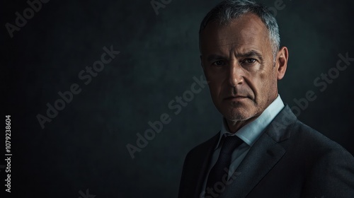 portrait a senior businessman standing against a dark background, conveying experience and authority
