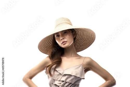 Portrait asian woman wearing straw hat made with Generative AI