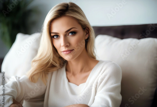 'Portrait beautiful average years mother adult room The couch blonde Woman Love Home Room Happy Smile Portrait Skin Holiday Mother Photo Beautiful Adult Life Sofa Day Happiness Care Stock Blond'