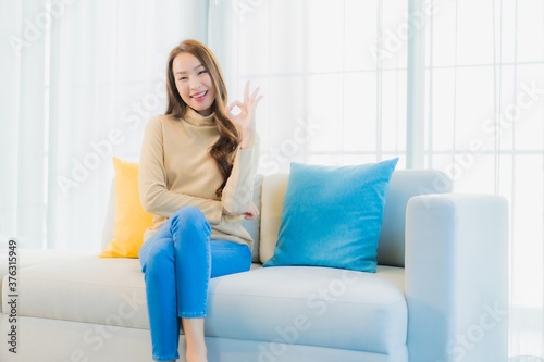 Portrait beautiful young asian woman relax leisure enjoy on sofa