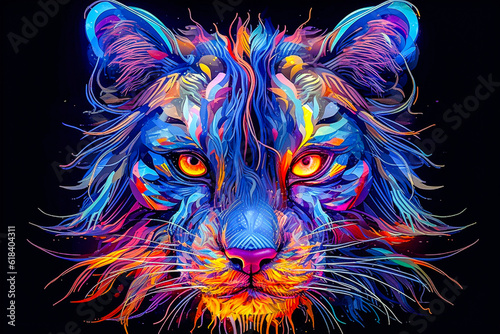 cat, portrait, head, look, eye, black background, isolated, bright, animal, pretty, art, colours, colourful, nature, wild, animal, neon, fluorescent, drawing, paint, illustration, fun, fun, cartoon, powerful