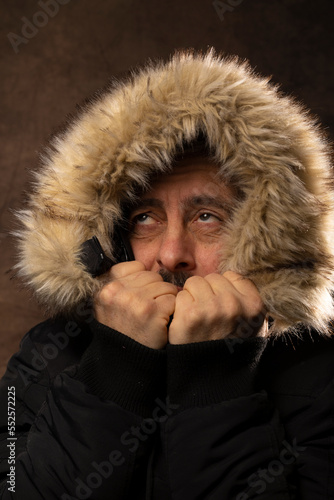 cold, winter, man, heating, electricity, freeze, coat, hood, grimace, marode, flu, fun, fur, cooler, gel, face, jacket, person, snow, looking, hot, clothing, overlay