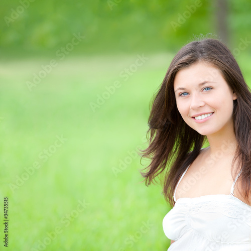 portrait, woman, girl, summer, close-up view, forest, meadow, green, enjoyment, fun, relaxation, outdoors, outside, ease, lifestyle, free, season, fresh, sweet, white, natural, attractive, female, 18, top, hair, long, romantic, positive, brunette, an, person, happy, nature, smile, relax, beauty, pretty, merry, pretty, bright, sitting, body, model, fashion, square