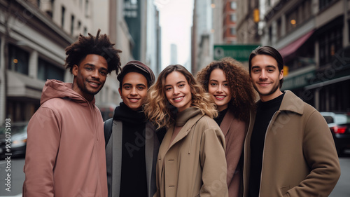 portrait, people, friends, happy, group, together, woman, man, young, laughing, joy, cheerful, modern, smiling, youth, meeting, city, street, fashion, trendy, lifestyle, girl, stylish, boy, fashionable, friendship, woman, hug, joyful, man, smile, female, male, adult, diverse, ethnic, black, african, american, caucasian, fun, outdoors, urban, outside, carefree, student, enjoy, multiracial