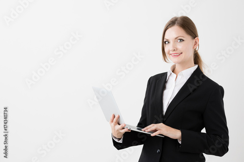 woman, people, ol, alien, foreigner, white, english, foreign language, personal computer, notebook, possess, career woman, alone, smile, suit, work, business, working girl, beauty, young, waist up, white, copy space, cut-out, background