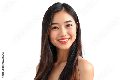 woman, female, smile, smiling, model, asian, young, beautiful, hair, brunette, isolated, transparent, white, beauty, japanese, korean, coiffure, portrait, happy, long, 20s, happiness, people, face, expression, facial, person, studio, skin, fashion, natural, cheerful
