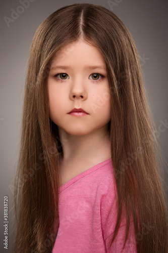 clothes, girl, model, small, teenage, studio, fashion, modern, brunette, children, natural, beauty, young, portrait, suit, shirt, jacket, pink, hair, long, straight