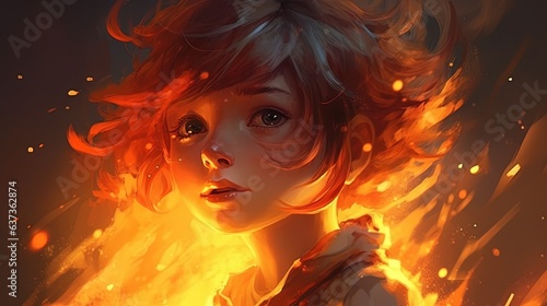 Portrait of a beautiful little girl with orange hair . Fantasy concept , Illustration painting.