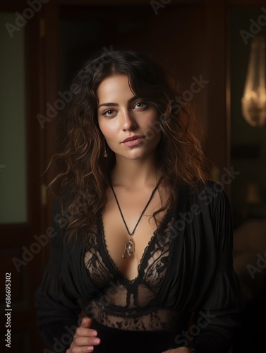 woman, beauty, fashion, model, dress, hair, glamour, lady, posing, people, style, brunette, face, black, sensual, person, dark, corset, lingerie, make-up, blond, retro, luxury, sensuality, elegance, generative, ai, eye, smile, lip, make-up, looking, skin