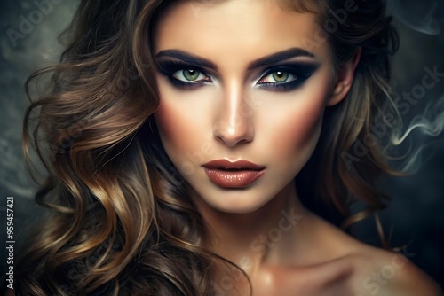 Portrait of a Beautiful Woman with Smoky Eye Makeup.