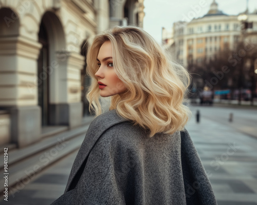 woman, street, fashion, beauty, city, person, hair, blond, model, autumn, urban, lifestyle, coat, blond, art, background, bright, colourful, concept, copy, creative, design, minimal, pastel, style, surreal, trend, contemporary, trendy, aesthetic, idea, modern, juxtaposition