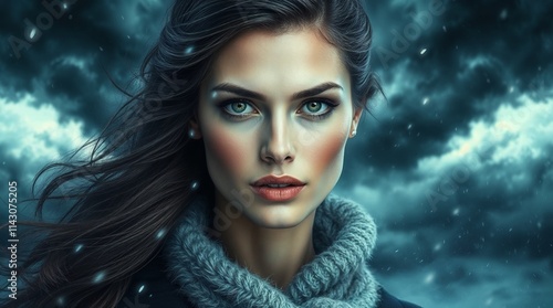 portrait, woman, beauty, young, model, face, dramatic, expression, fashion, art, photo, hair, eye, make-up, style, emotion, elegance, serene, aesthetic, closeup, nature, wind, cloud, artistic, striking, confidence, personality, creative, stunning, winter, mood, atmosphere, captivating, chic, detailed, glamourous, concept, sophisticated, contrast, enchanting, high-coloured, elegant, portraiture