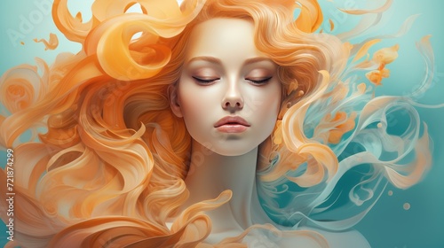 Portrait of a beautiful young woman with long curly hair. Portrait of a beautiful girl with curls and flowers in her hair