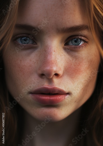 woman, face, closeup, head, closeup, skin, avatar, character, portrait, beauty, freckle, green eye, hair, gaze, youth, femininity, natural, expression, elegant, model, eyebrow, make-up, detail, lip, attractive, caucasian, glance, innocence, serene, soft, radiant, contemplative, subtile, graceful, pure, stunning, softness, delicate, mood, authentic, charme, sensual, warmth, emotion, glow, person, people, fashion, eye