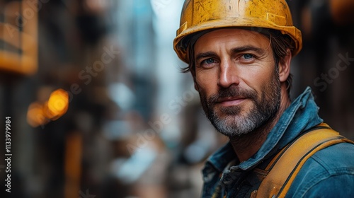 construction, men at work, portrait, man, industry, industrial, labourer, blue, collar, hard, hat, helmet, safety, work, job, profession, occupation, builder, engineer, technician, craftsman, skilled, confident, serious, determined, focused, masculine, strong, powerful, bearded, mature, adult, male, portraiture, closeup, face, expression, eye, look, professional, gear, equipment, uniform, grit, industrious