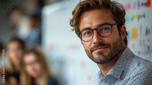 man, portrait, person, face, goggles, confident, serious, smile, business, professional, male, office, work, adult, photogenic, white, young, hair, beard, look, eye, eyeglass, casual attire, shirt, fashion, style, model, indoor, executive, entrepreneur, manager, leadership, team, success, sharpened, corporate, employee