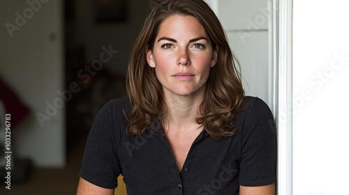 Portrait of a Confident Woman in Black Shirt Serious Expression