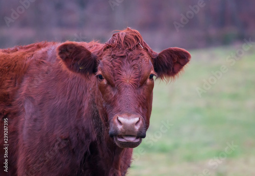 portrait of a cow in the field