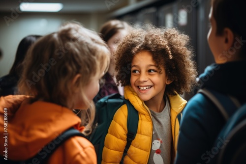 people, children, elementary school, portrait, african american, caucasian, boy, girl, backpack, student, education, multiracial, classroom, learning, children, friends, youth, diversity, smiling, happy, pupil, studying, friendship, inclusion, equity, togetherness, childhood, playful, fun, academic, group, cheerful, classmate, educational, joyful, backpack, boy, girl, lifestyle, copy space
