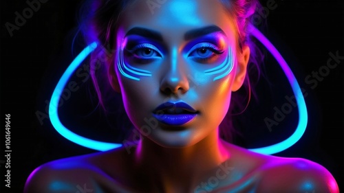 portrait, woman, fluorescent, light, black, background, space, face, model, beauty, fashion, glamour, make-up, closeup, lady, illustration, club, wallpaper, design, neon, glowing