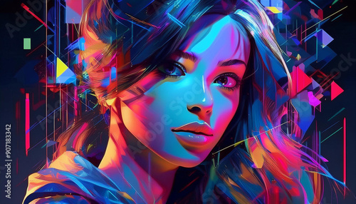 digital artwork, background, colourful, woman, beauty, hair, fashion, face, model, make-up, red, eye, lip, glamour, make-up, black, person, coiffure, art, style, redhead, brunette, lady, colours, dark, long, head, sensuality