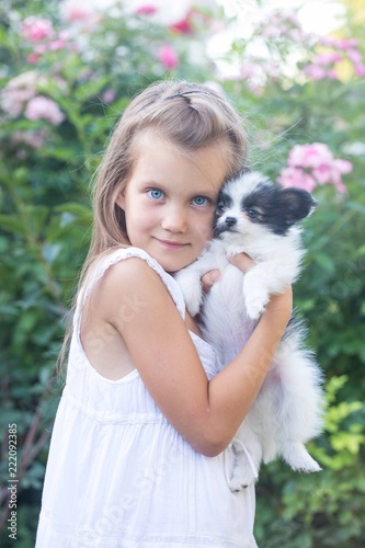 puppy, papillon, animal, cute, dog, garden, little, young, happy, pet, small, summer, mammal, canino, green, nature, white, beautiful, breed, fun, spaniel, background, funny, friends, beauty, portrait, female, toy, outside, friendly, play, playing, face, doggy, 1, rose, flower, girl, children, man, brown, tender, romantic, tenderness, love, family, hand, hugging, basket