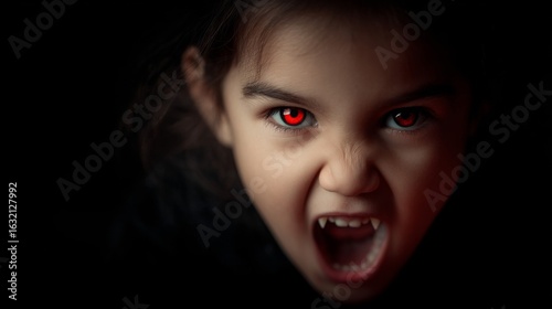 girl, children, vampire, fang, red, eye, halloween, scarey, dark, portrait, closeup, face, expression, fear, horror, fantasy, supernatural, mythical, creature, monster, devil, daemon, evil, costume, creepy, intense, dramatic, lighting, low, key, background, night, shadow, theme, children, young, toddler, frightening, gothic, grisly, mystery, secret, art, skittish, grim, menacing
