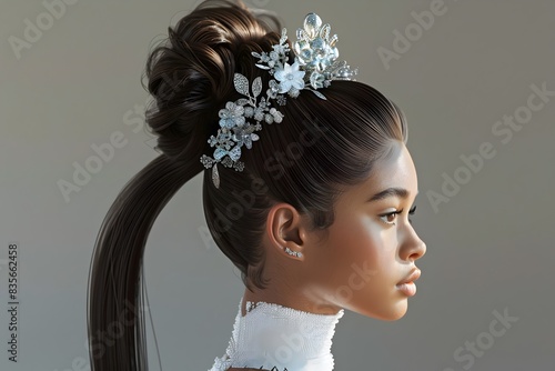 Portrait of a Glamorous Woman with a High Ponytail and Stylish Hair Accessory