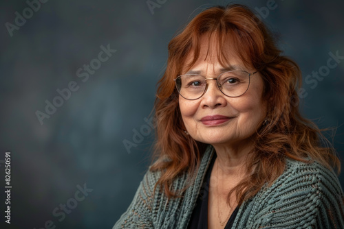portrait, mature woman, diverse, beautiful, confidence, elegance, grace, beauty, subtile, goggles, red hair, serene, poised, sophisticated, natural beauty, inspiring, dignified, authentic, candid, lifestyle, hair, traditional, stylish, calm, wisdom, hearty, emotional, refined, studio shot, memorable, engaging, warm, appealing