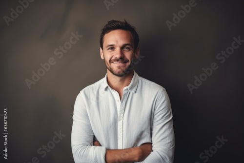 Portrait of a handsome young man in a white shirt on a dark background