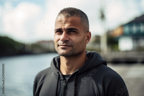 Portrait of a handsome young man in sportswear, outdoors