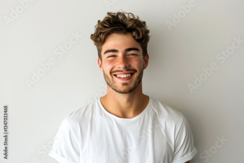 people, portrait, photogenic, young, man, male, smile, white, t-shirt, standing, background, confidence, happy, cheerful, joy, positive, expression, attractive, casual attire, fashion, style, modern, minimalist, simplicity, fresh, clean, trendy, self-assured, friendly, relaxed, optimistic, approachable, youthful, energy, vibrant, charming, contemporary, person, isolated, studio, model, individual, beauty, lifestyle, bright, healthy, natural, charismatic, lifestyle