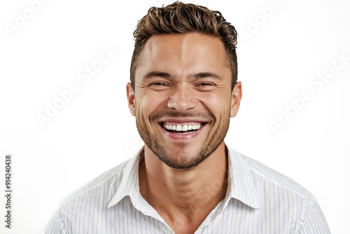 happy, smiling, man, portrait, white, shirt, striped, background, joyful, cheerful, positive, confident, success, happiness, joy, laughing, teeth, smile, face, closeup, emotion, expression, people, adult, male, young, photogenic, caucasian, model, studio, isolated, professional, businessman, employee, men at work, team, collaboration, friendship, communication, business, lifestyle, work, office, corporate, shot, head shot, bright, light, clean