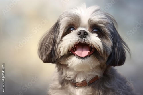 Portrait of a happy shih tzu isolated on soft gray background