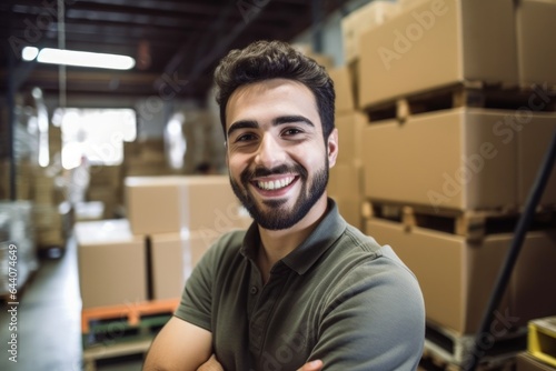 portrait, happy, young, man, working, warehouse, job, employee, industry, smiling